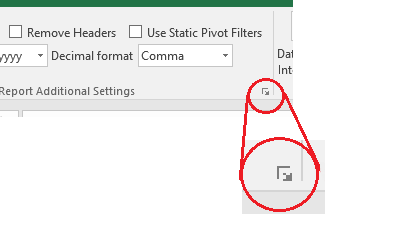 The Data Sheet Special Settings dialogue, Figure 44, can be opened from the dialogue launcher shown in Figure 63. (The little arrow in the right lower corner of the Report additional setting menu area).
