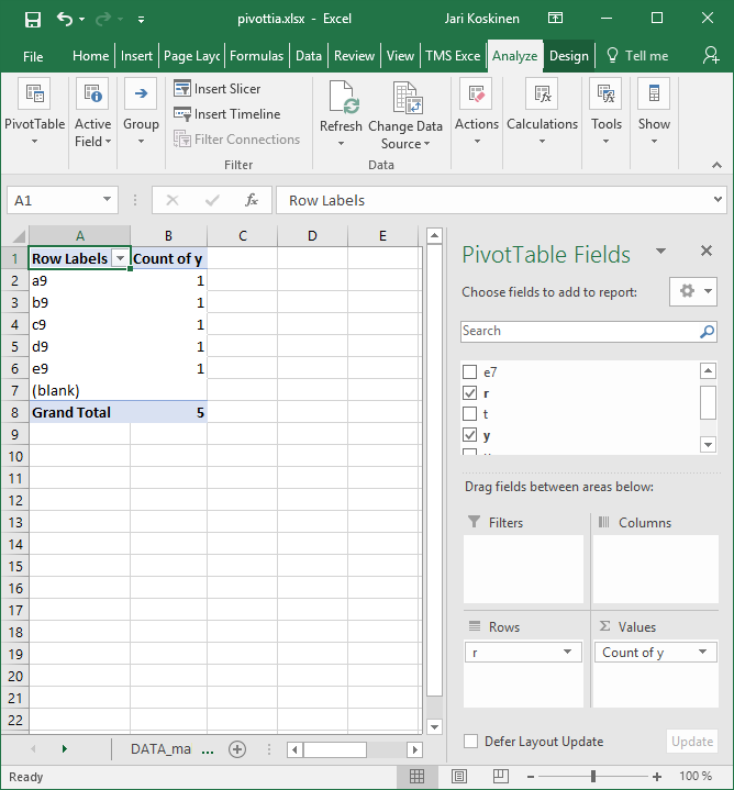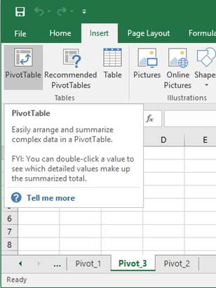 Press <ENTER> couple of times to create the Pivot table to the Pivot_3 worksheet. Then select values for Rows and Values etc. There is the blank row visible in the Row Labels.