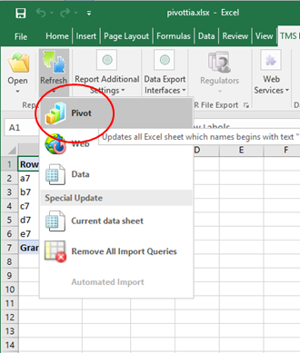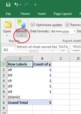 Once the values are Refreshed the blank added by excel is de-selected automatically by Toolbar. First click the lower part of the Refresh command button as shown in . Then click on the Pivot shown in Virhe. Viitteen lähdettä ei löytynyt. .