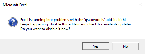 When excel notices that there are some general problems with the Toolbar it might show the error dialogue shown below in Figure 71.